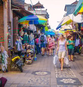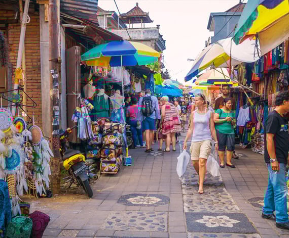 Ke Pasar Seni Tradisional Ubud yang secara lokal disebut sebagai 'Pasar Seni Ubud' terletak di seberang Istana Kerajaan Puri Saren Ubud dan buka setiap hari.